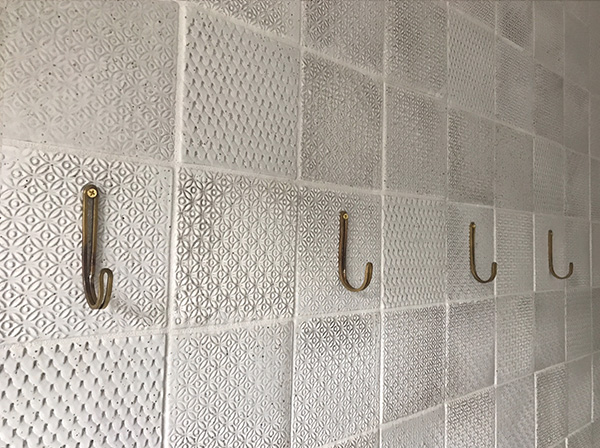 They were also used in the utility room, floor to ceiling on one wall. I adore the finish. It’s so tactile, I just want to reach out and run my hand across the wall. They’re perfectly matched with the grey cabinets and light wood worktop and floor, I wouldn’t mind doing chores if my utility room looked like this!