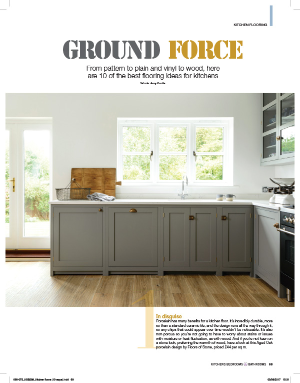 The same kitchen was also featured in Kitchens, Bedrooms and Bathrooms in their article about the most hard-wearing flooring options for kitchens. We were thrilled to see that our Aged Oak Porcelain took the number 1 spot!