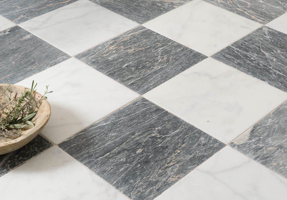 Long gone are the days of ‘less is more’ – 2019 is the year of the statement! For many years a lot of people have opted for a simpler style with soft, muted colour pallets but I feel this may be no more! You may have seen across our social media platforms that we recently introduced two new marble tiles; Parisian Chequer Marble and Torrente Polished Marble, both of which will certainly make a statement in your home! Our Parisian Chequer Marble has been designed to recreate a black and white chequerboard flooring which would have traditionally been used in many homes dating back to the 15th century. The softly tumbled edges of this marble tile really helps to give the appearance of a reclaimed stone, that you may even mistake for the original flooring.