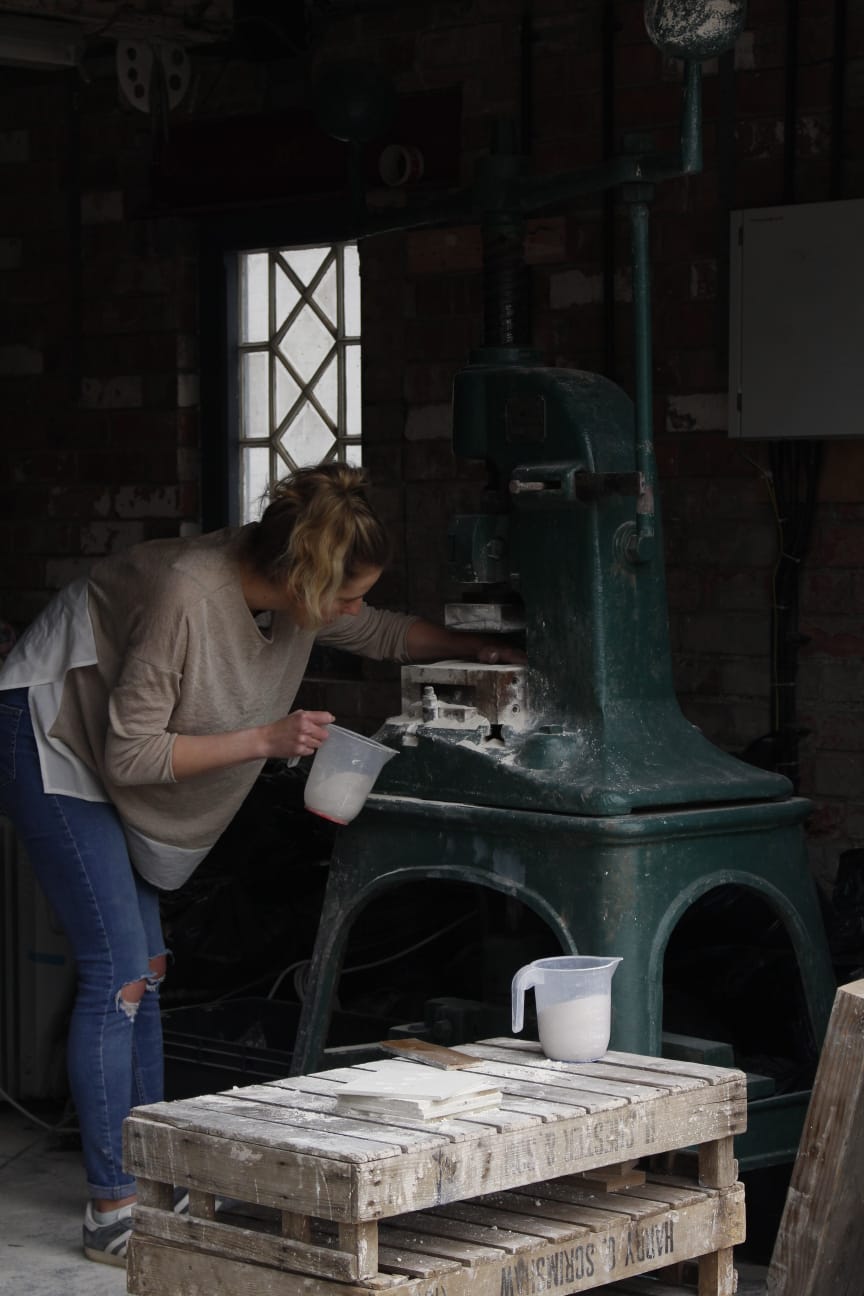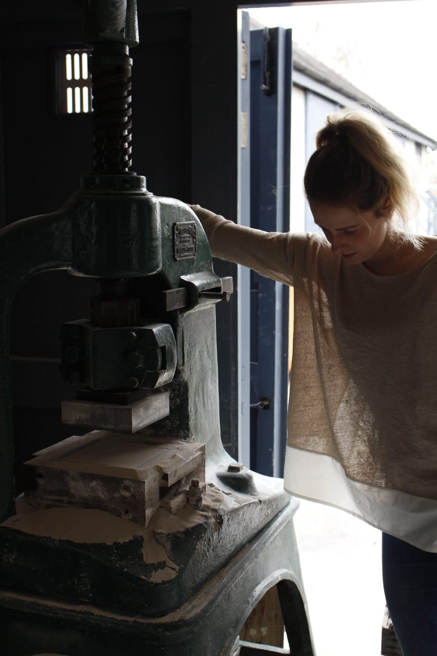 We purchased the press from a gentleman based in Stoke on Trent, the home of ceramics, who has been in the business of making handmade tiles for years. As he was retiring, and in need of clearing out his home studio, he handpicked us to be the new owners of his treasured press after seeing we designed and made unique ceramic tiles.