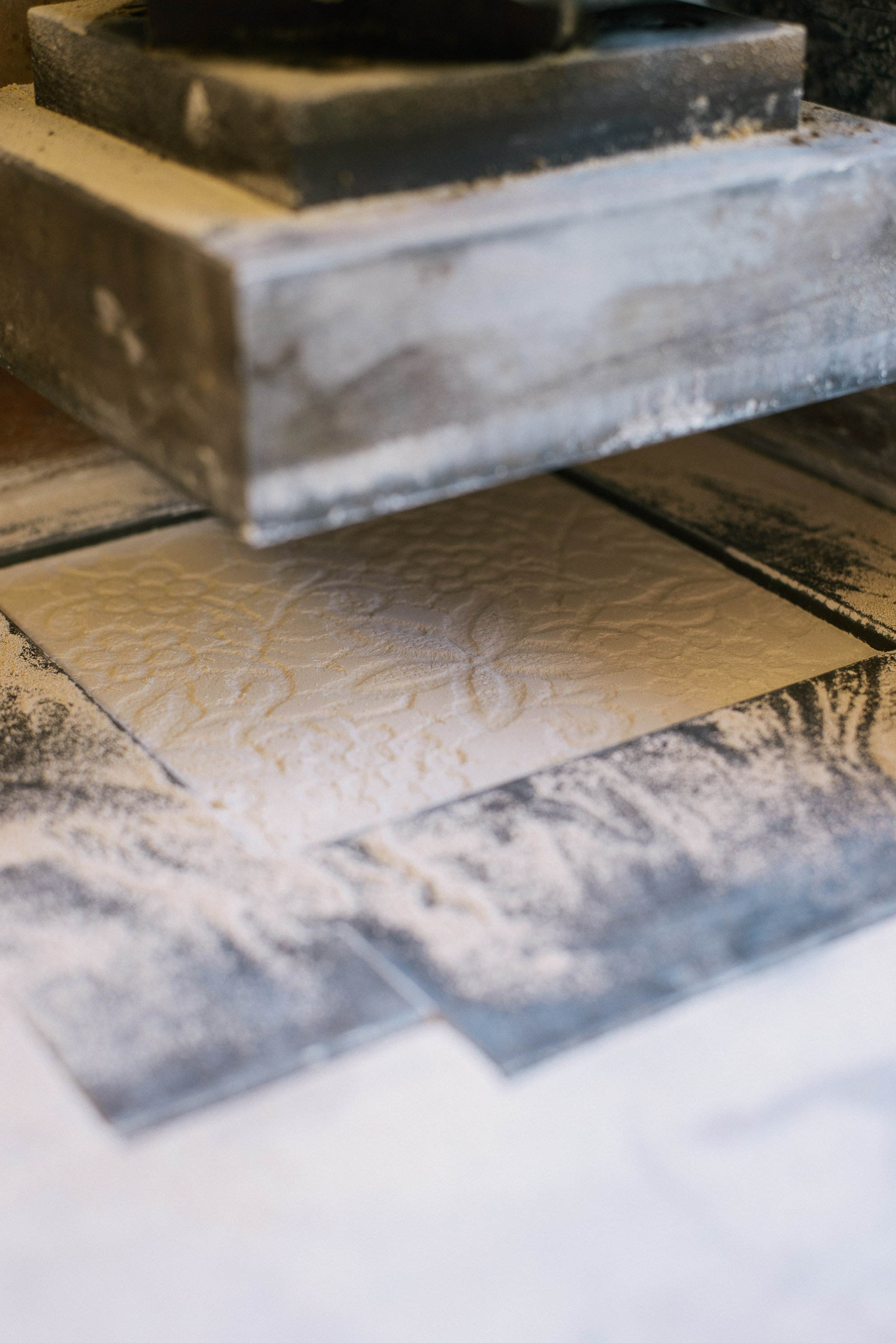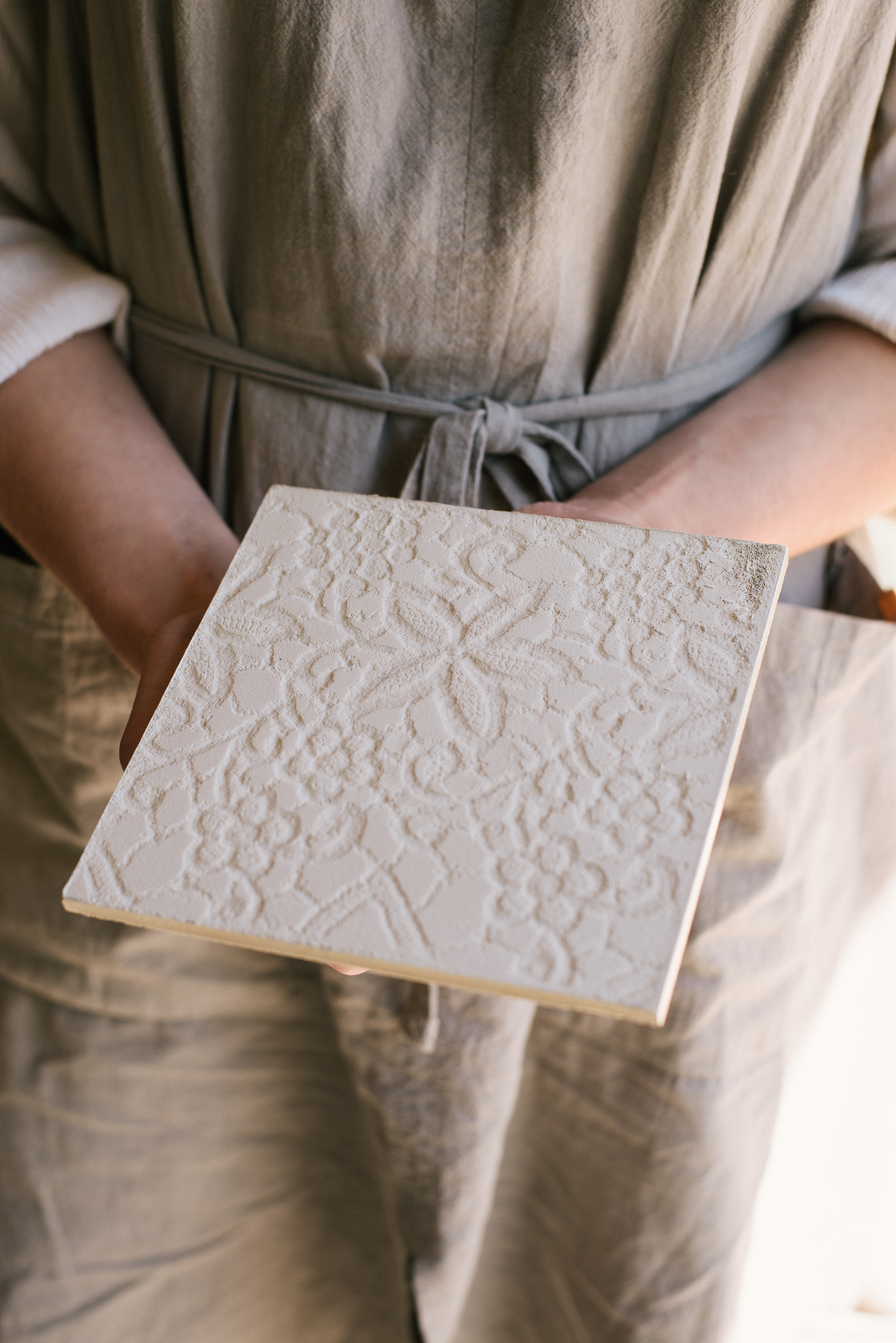 When the lace was pressed onto the tile, it perfectly captured the intricate details.